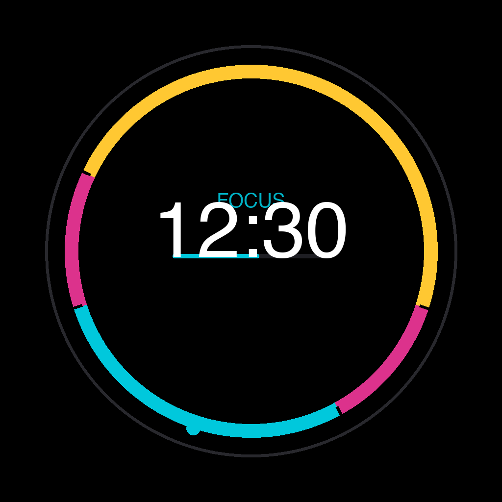 Build any sequence — work, break, exercise, study — each with its own label, duration, and color.